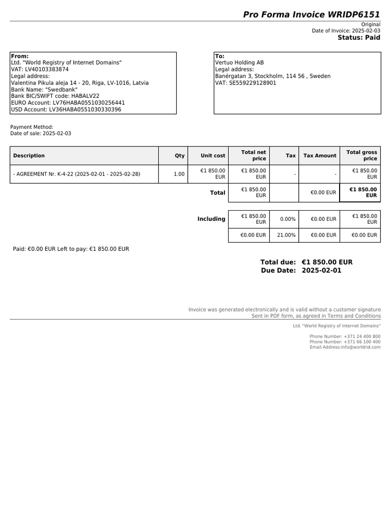 SIA World Registry of Internet Domains - WRIDP6151 | PDF | Invoice | Euro