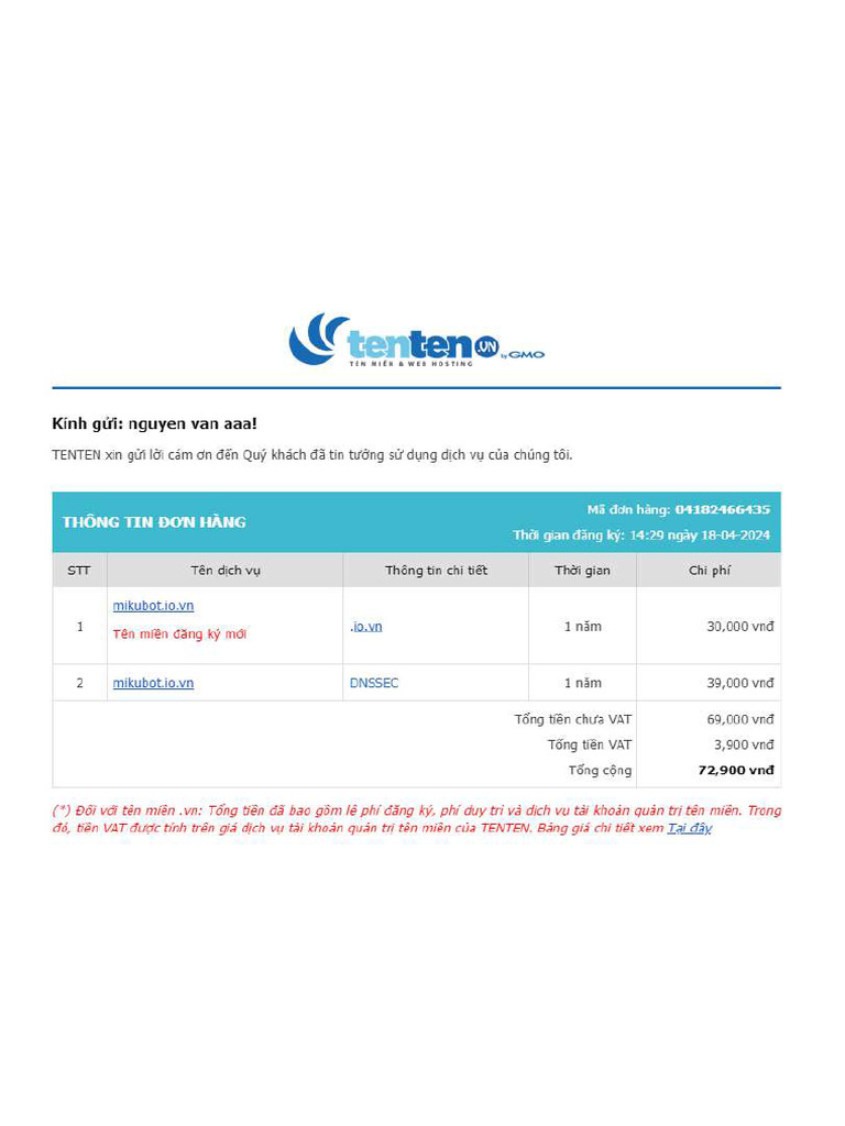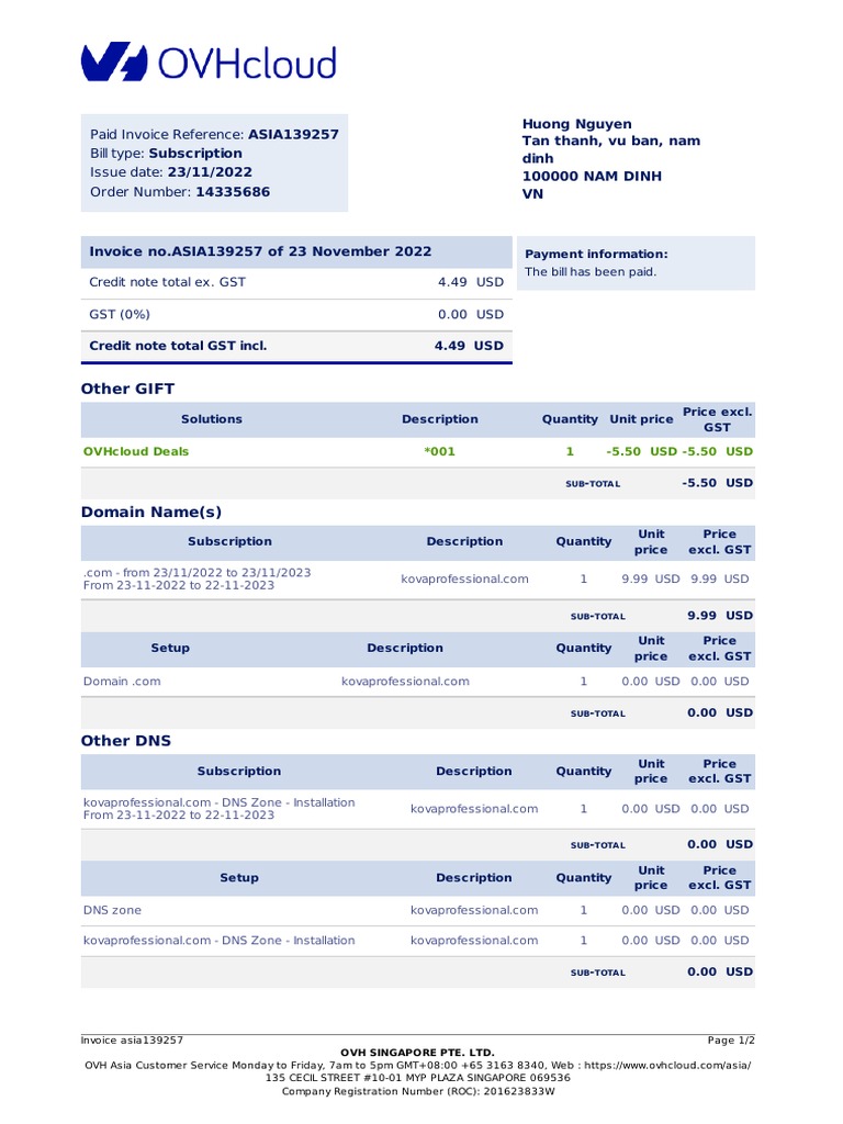 Domain Purchase Invoice Details | PDF | Receipt | Service Industries