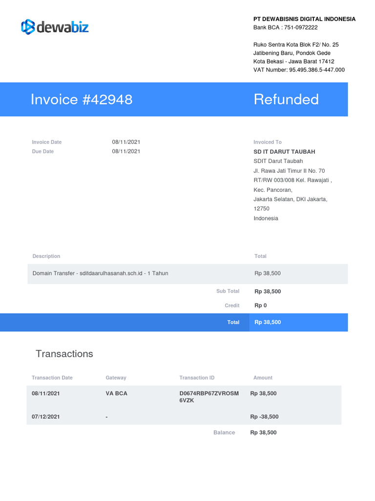 Invoice perpanjangan domain | PDF