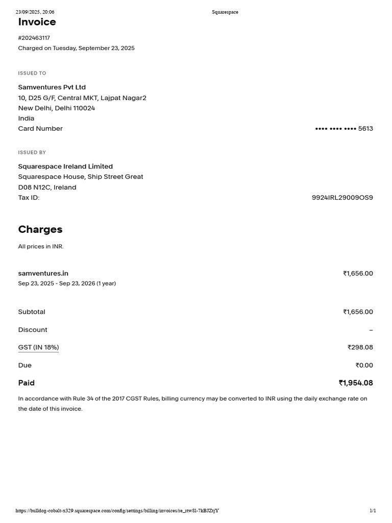 Samventures Domain Invoice | PDF