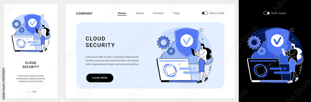 Cloud security website UI kit. Cyber security engineering, encrypted ...