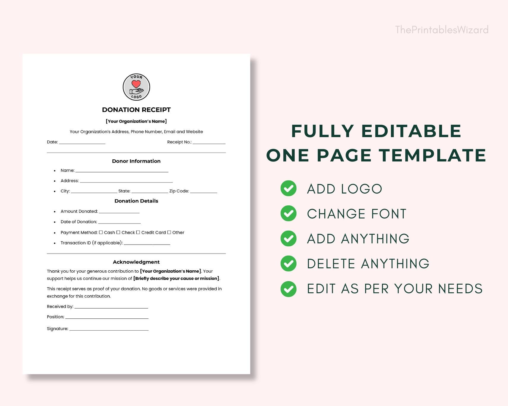 501c3 Donation Receipt, Editable Template for Nonprofit Donations ...