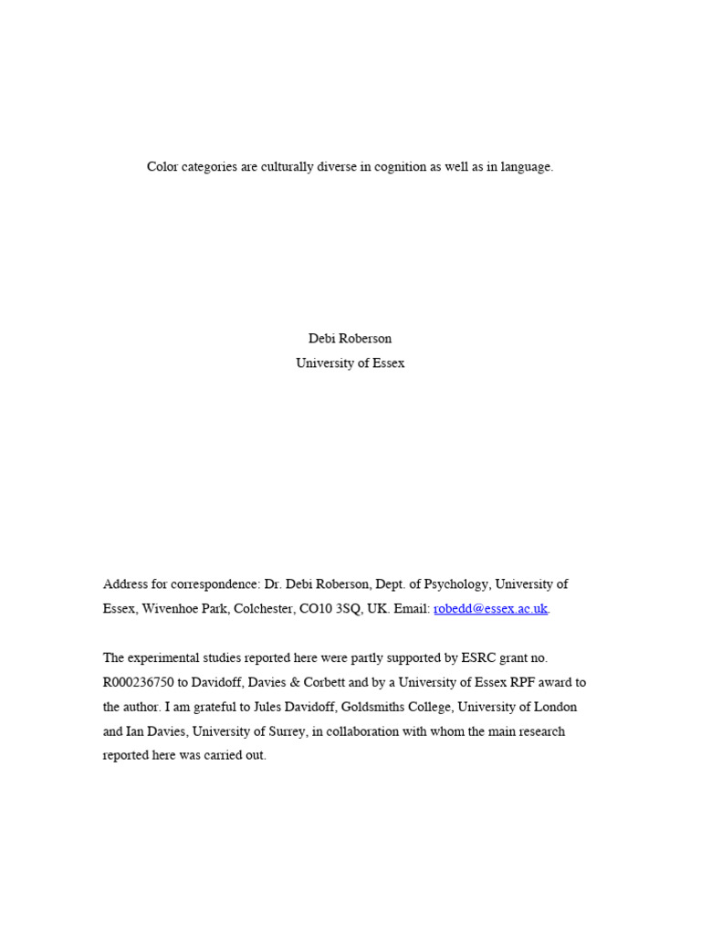 Color Categories | PDF | Perception | Color
