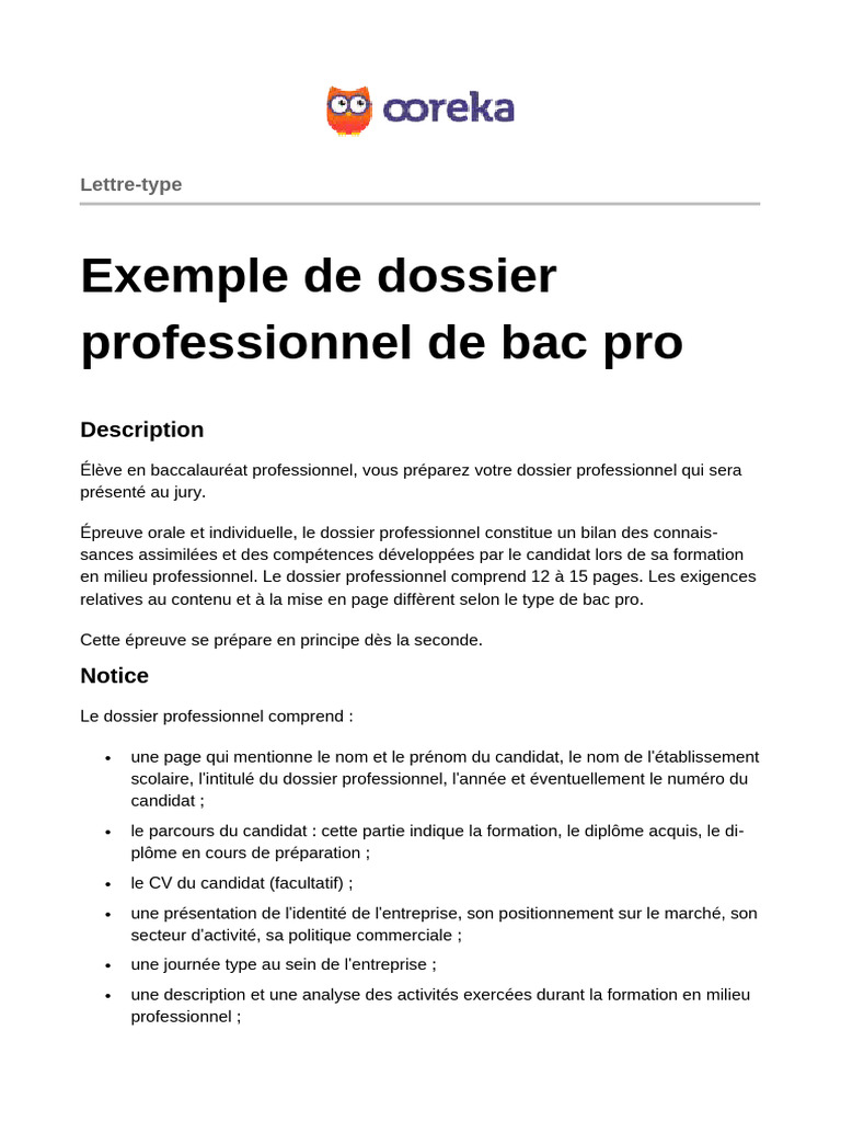 Ooreka Exemple Dossier Professionnel Bac Pro | PDF