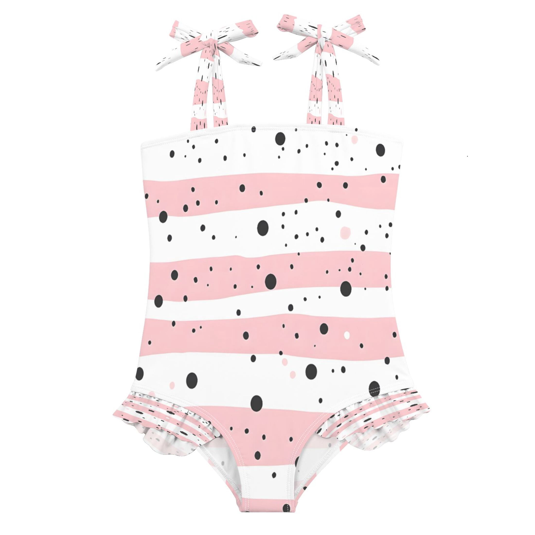 BZSMCE Swimsuit One Piece swimwear Pink Stripe Dots Pattern of Pattern ...