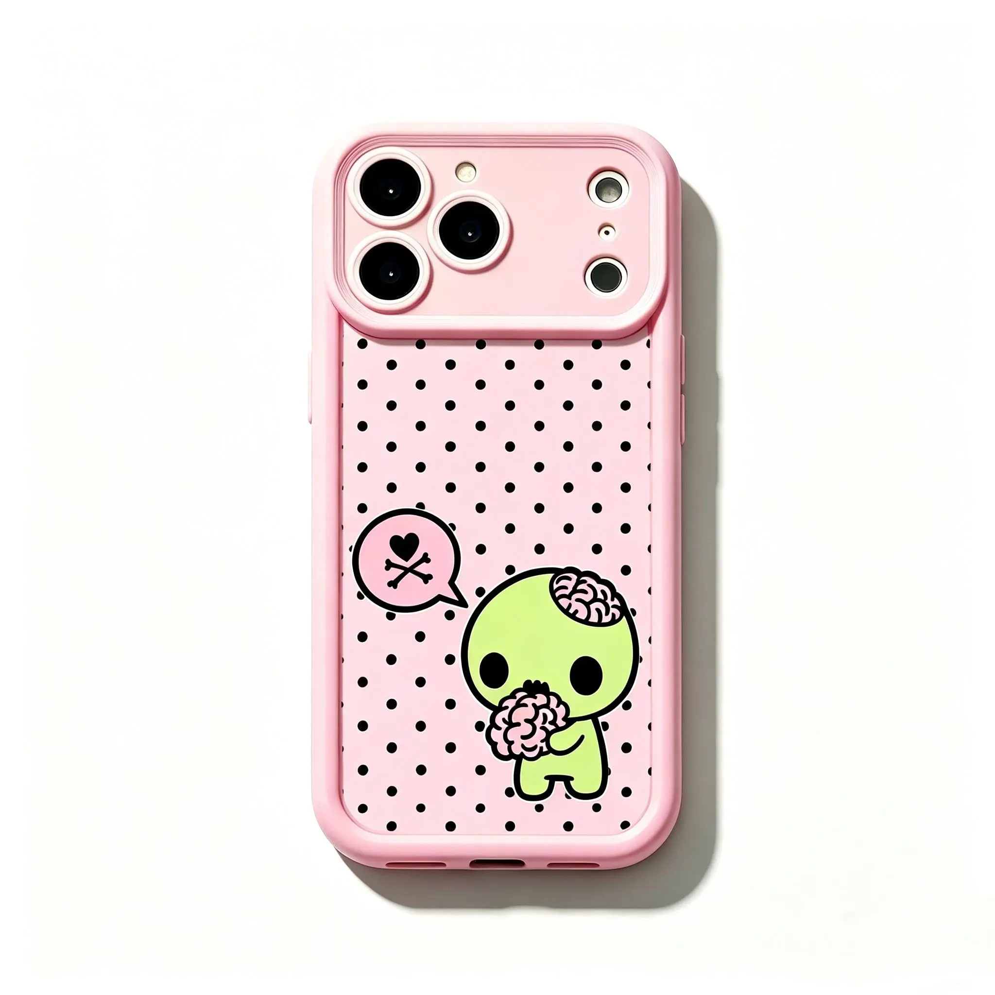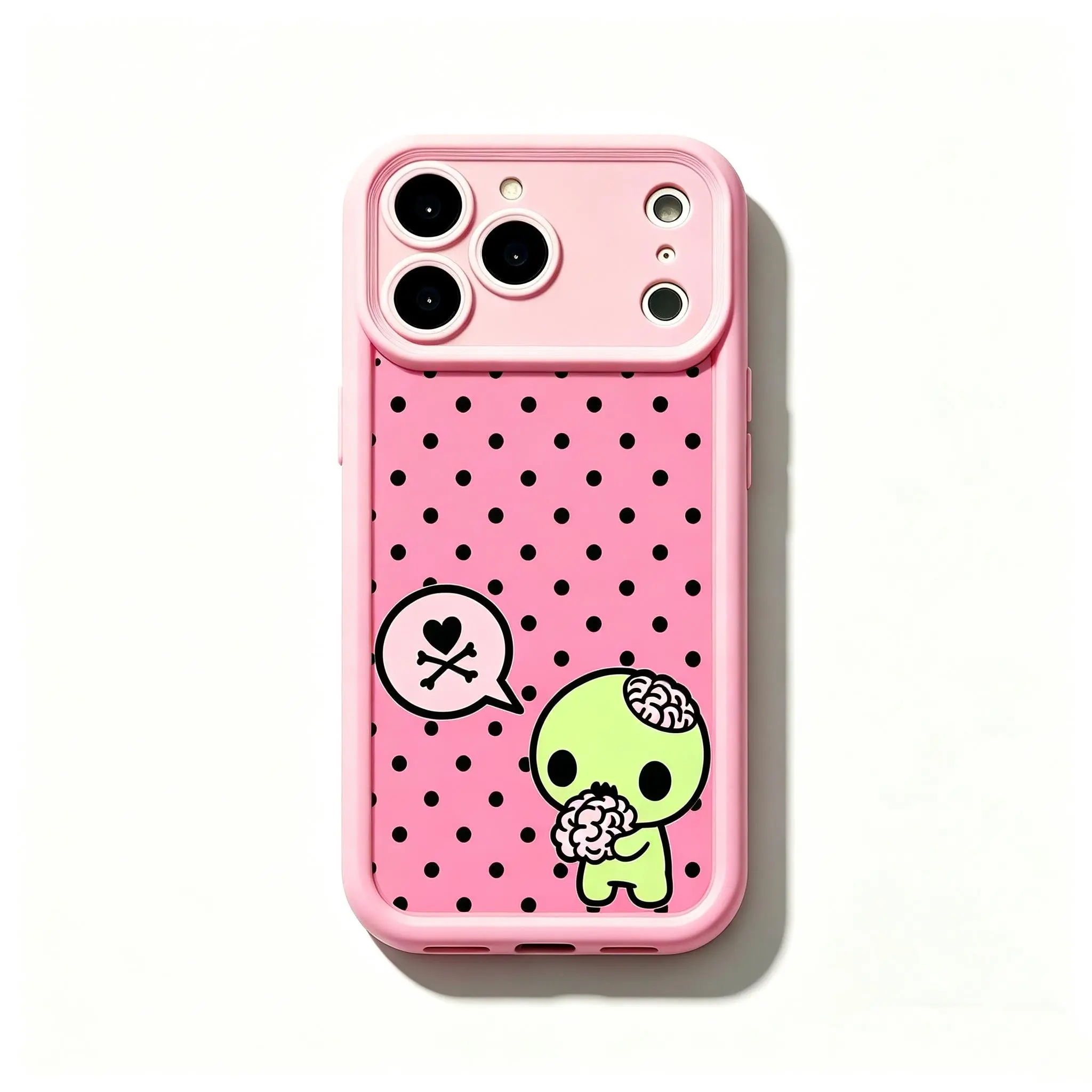 Y2k Kawaii Emo Zombie Phone Case | Pink Black Polka Dot Skull Pattern ...