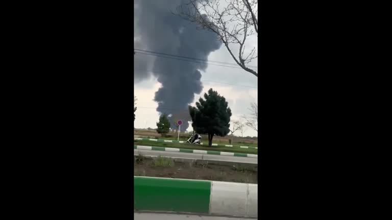 Thick smoke rises from the direction of Iran's Mashhad airport