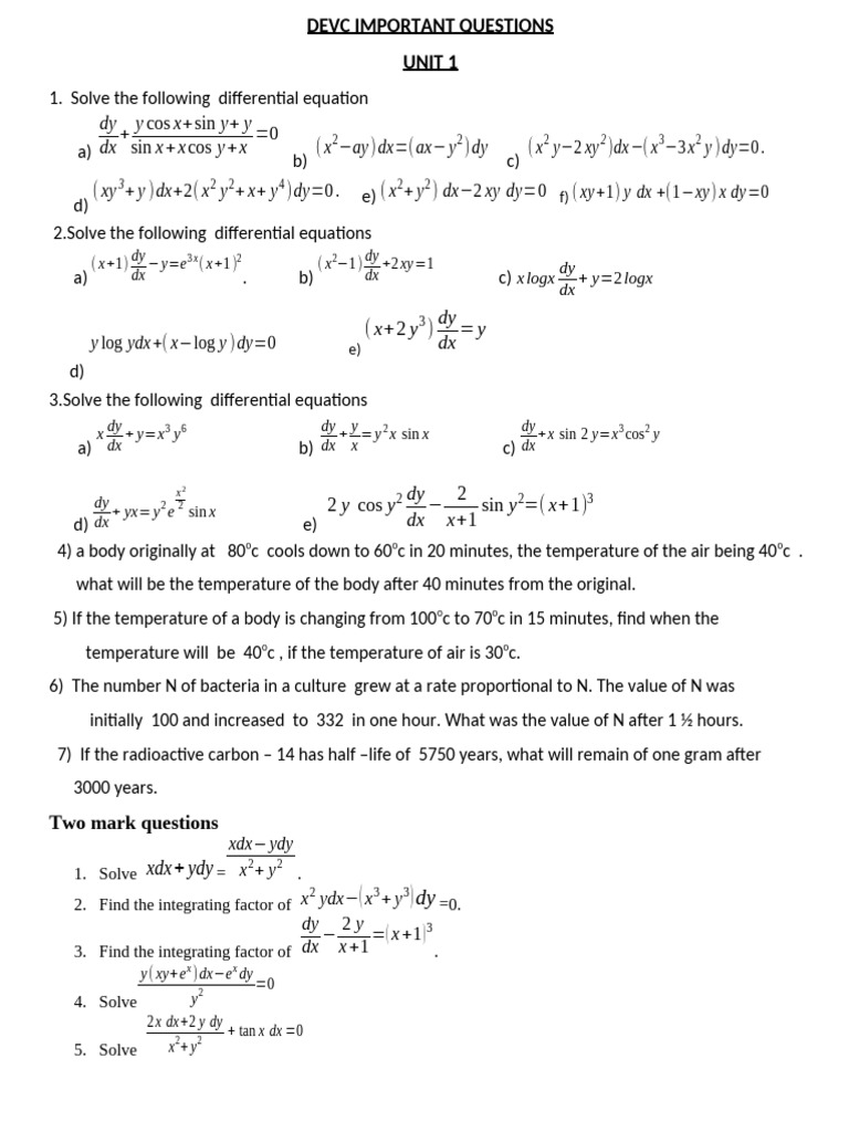 Devc Unit-1&2 Imp Questions 2024 | PDF | Calculus | Differential Calculus