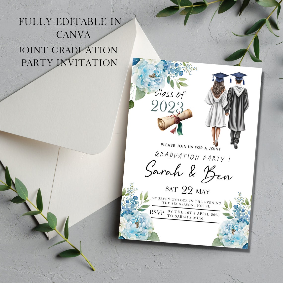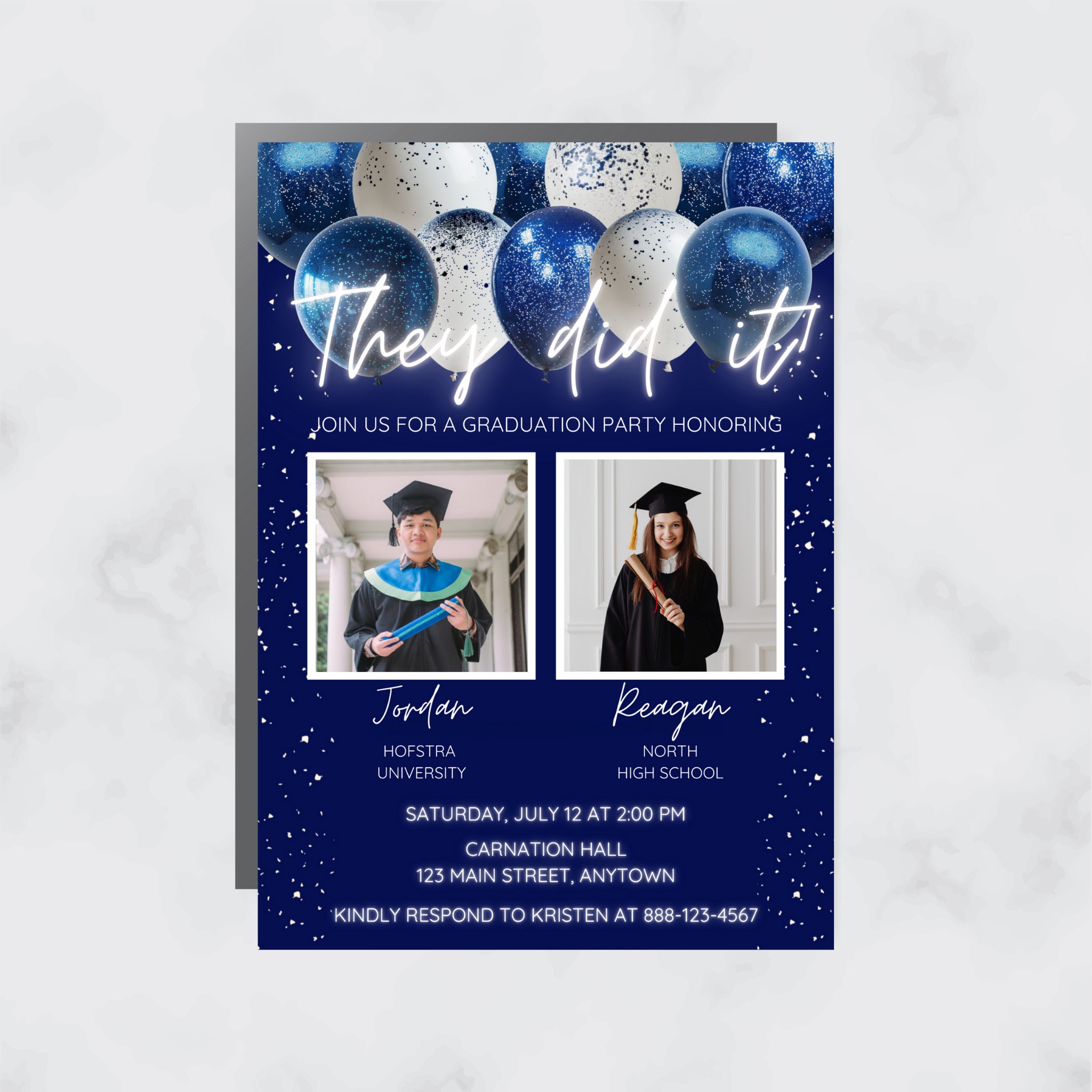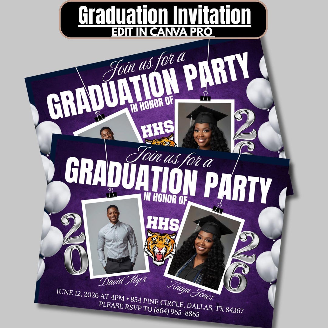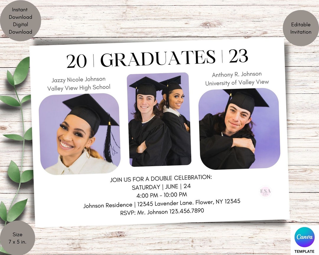 Double Graduation Party Invitation Any Year – Digital Editable Canva ...