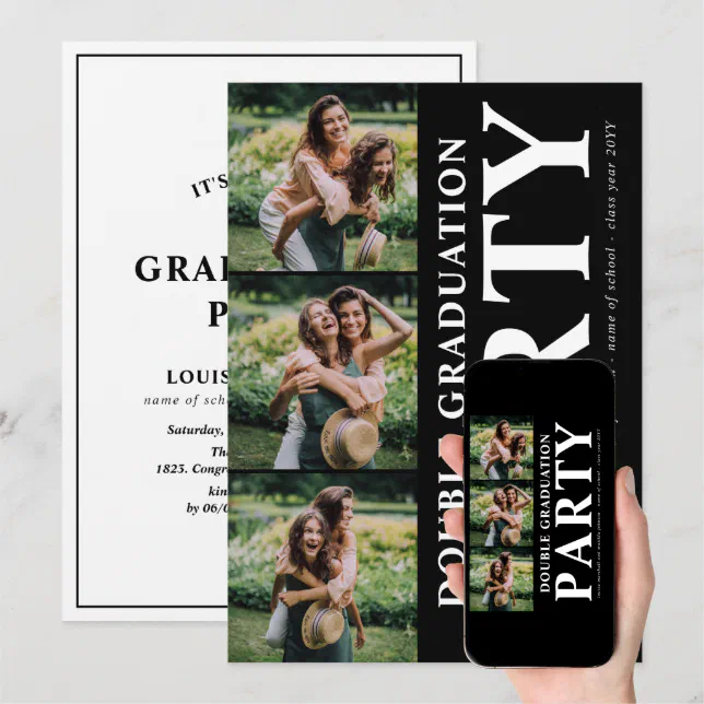 Editable Modern Double Graduation Party Photo Invitation, 2 Person ...