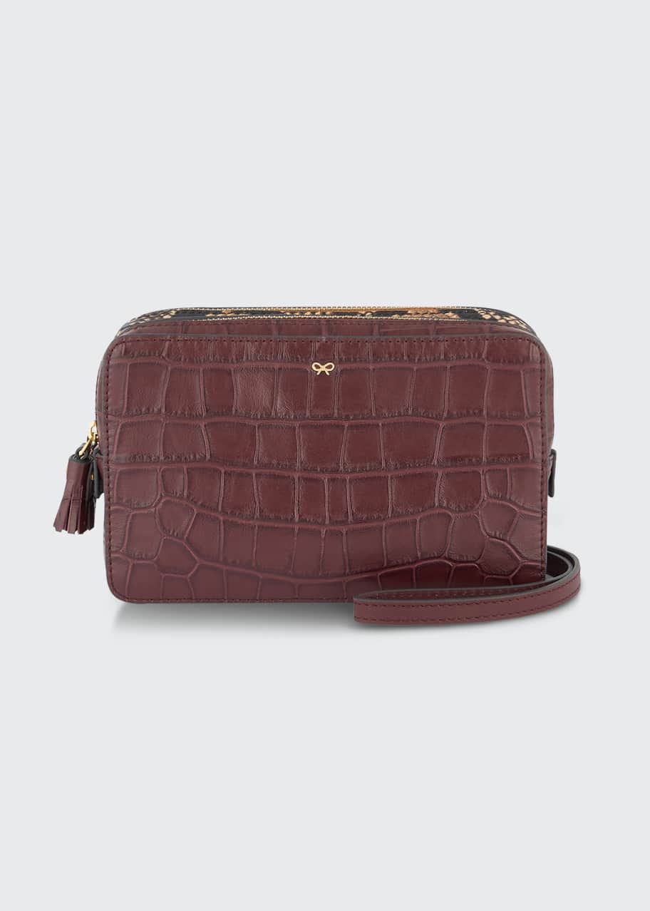 Anya Hindmarch Double Zip Crossbody In Croc Effect Leather With Glossy ...