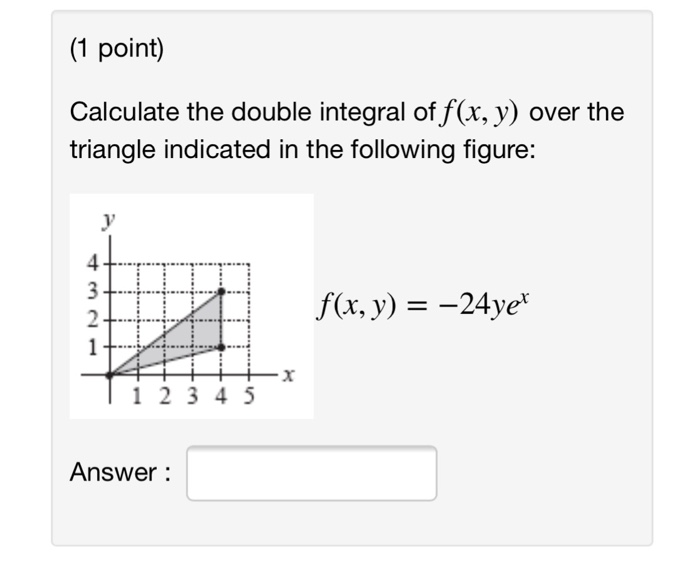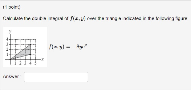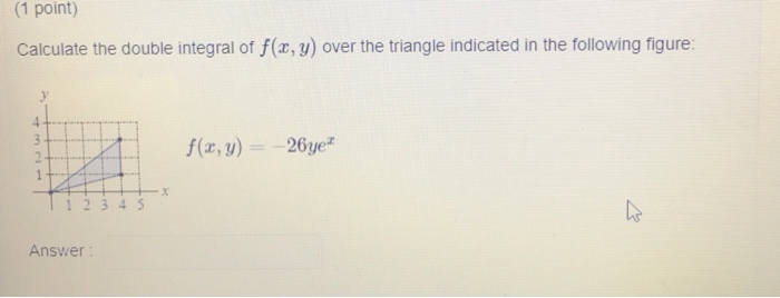 (1 point) Calculate the double integral of f(x, y) over the triangle ...