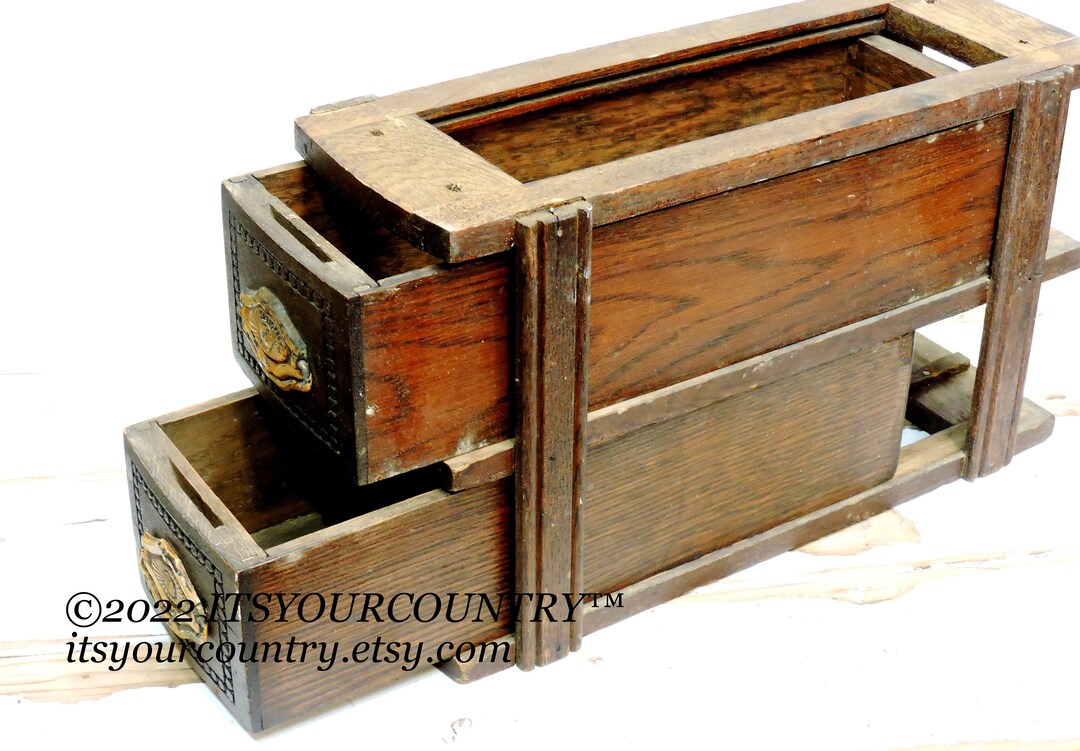 Vintage Double Stacked Wooden Drawers Sewing Machine Wood Drawer Boxes ...