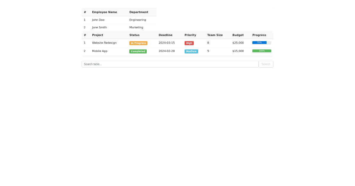 Table - Multiple Header with Multiple Columns (Bootstrap 4)