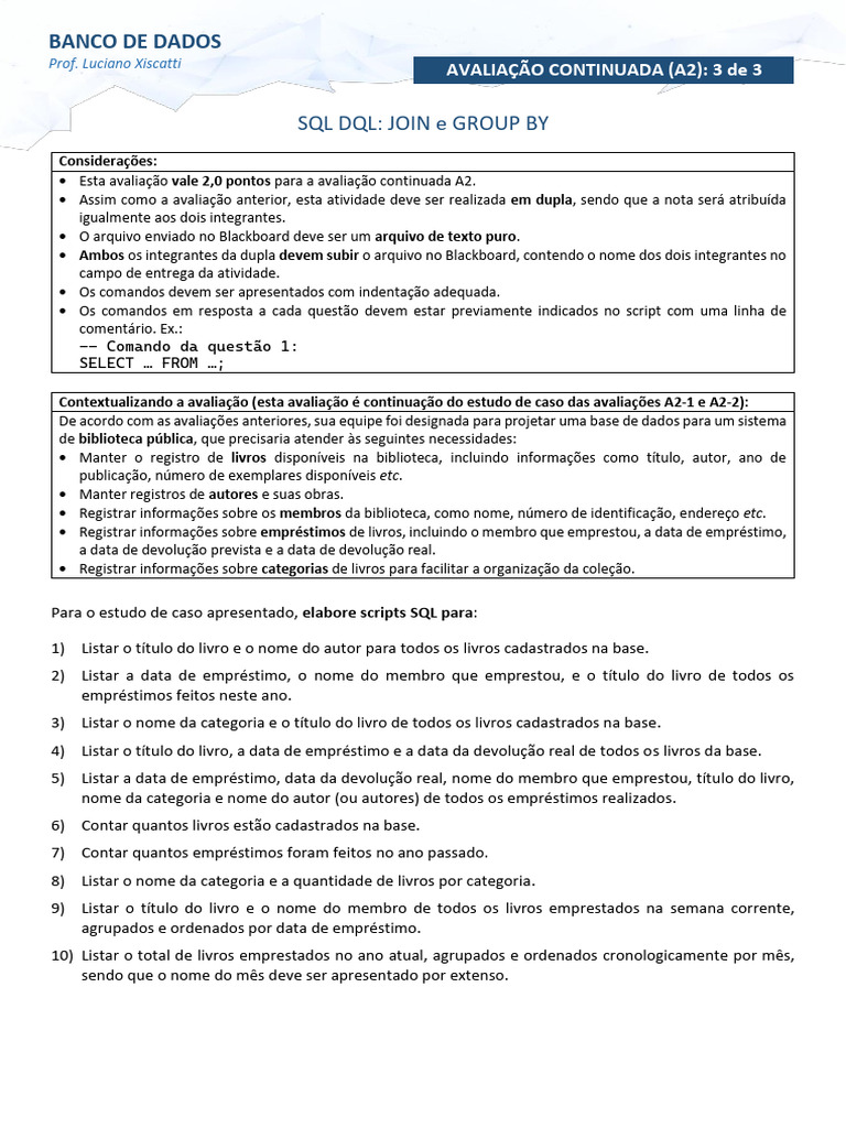 SQL DQL: Join E Group By: Banco de Dados | PDF