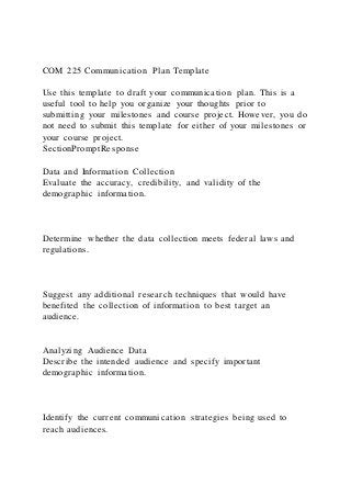 COM 225 Communication Plan TemplateUse this template to draft | PDF
