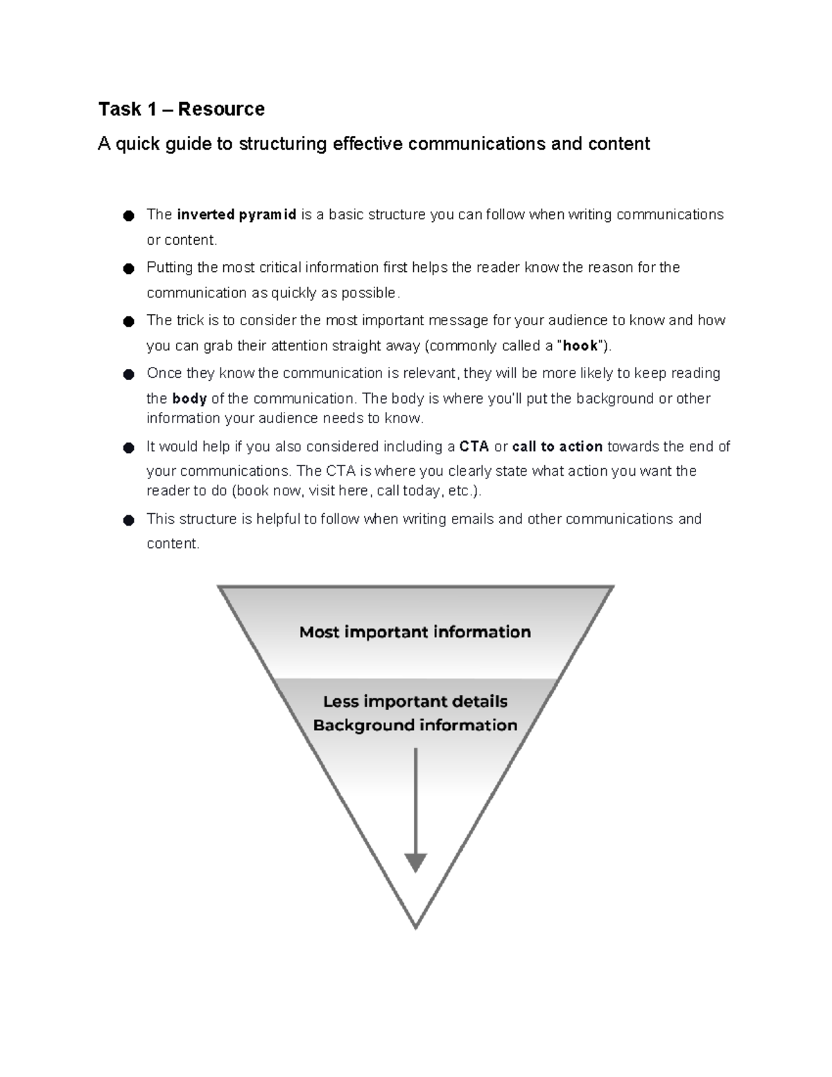 Task 1: Quick Guide to Structuring Effective Communications Draft - Studocu