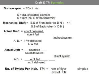 DRAFTING IN VARIOUS SPINING MACHINE Principle of yarn manufacturing | PPTX