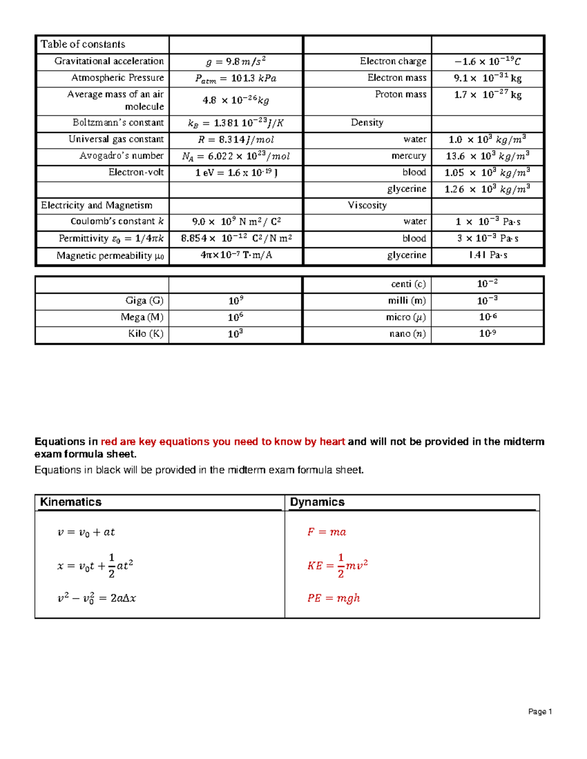 2025 Phys 1202 Draft Formula Sheet Midterm v1.1 - Page 1 Table of ...