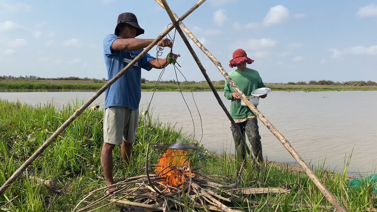 Drag And Steaming Fish On Skewer In The Lakeside For Food Very ...