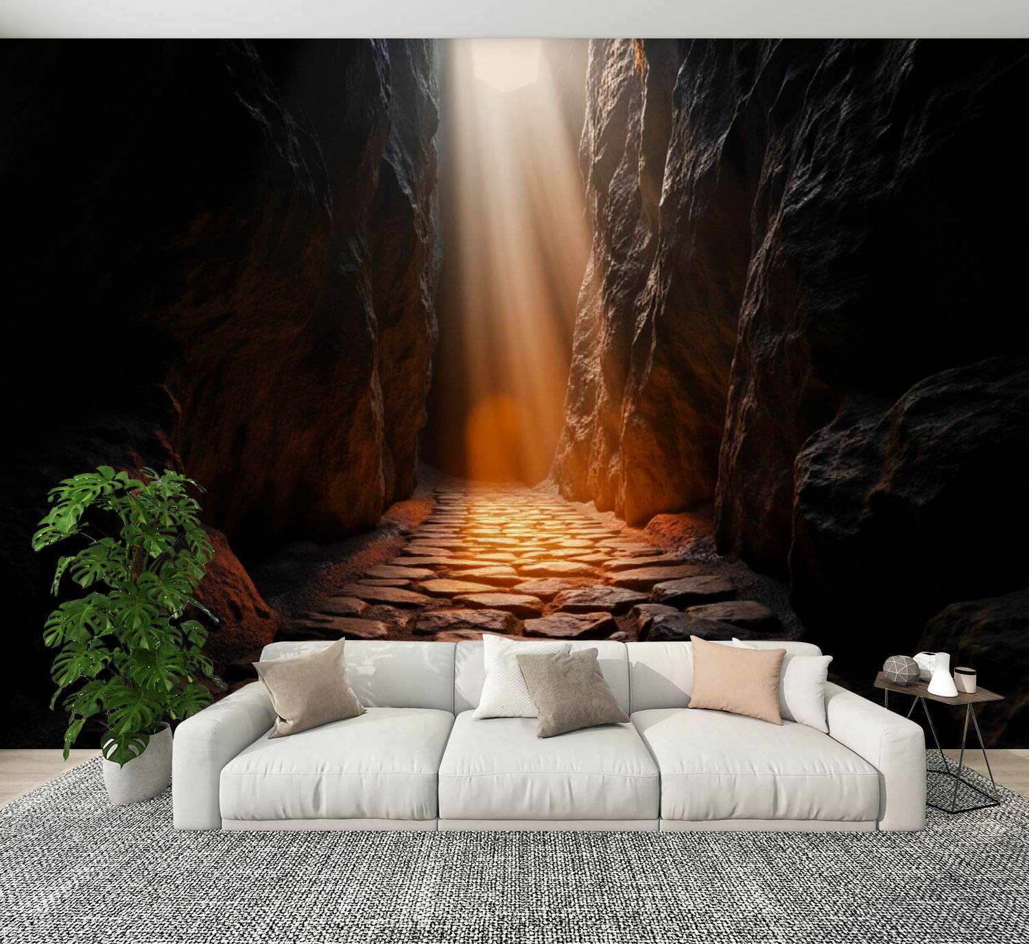 Red Barrel Studio® Peel and Stick Wallpaper Sunlit Rocky Cave Passage ...