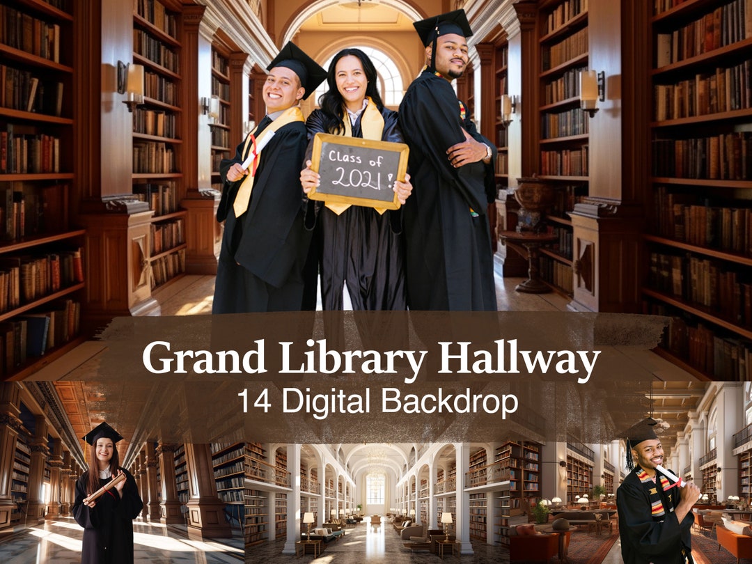 14 Grand Library Hallway Graduation Digital Backgrounds, Class of 2023 ...