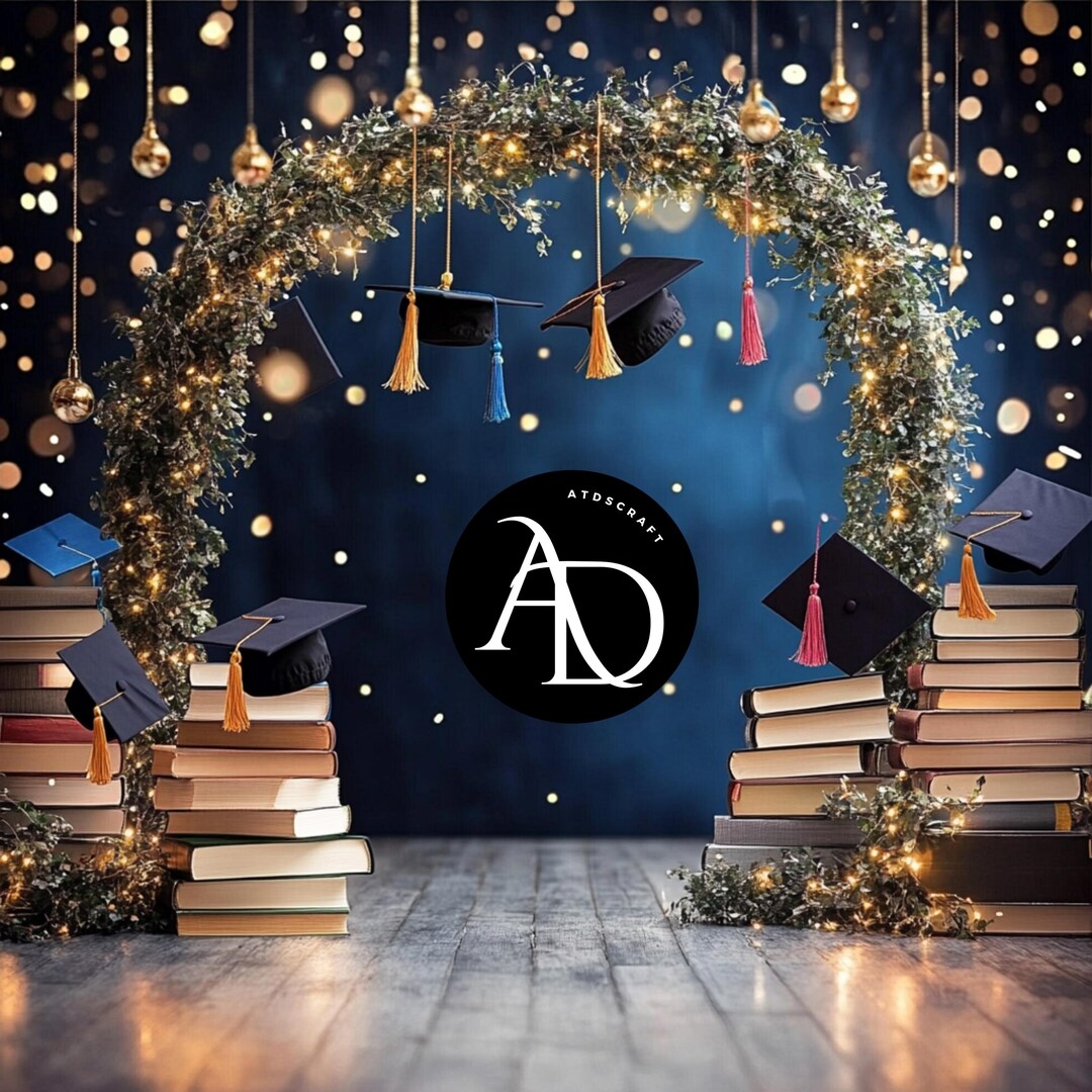 Graduation Sparkle Night Backdrop | Books, Cap Toss, and Fairy Lights ...