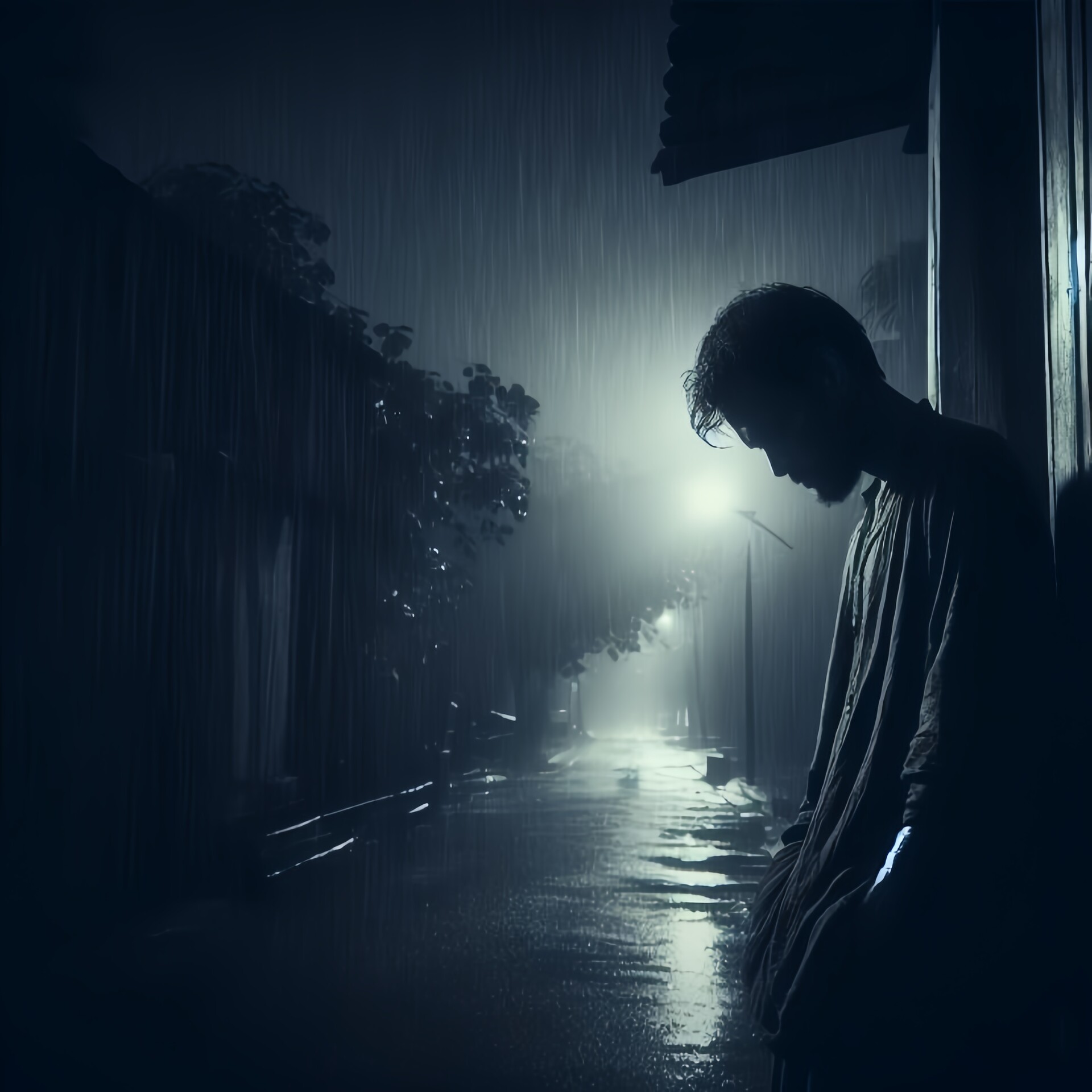 ArtStation - A man standing in the rain at night, a picture, by Matt ...