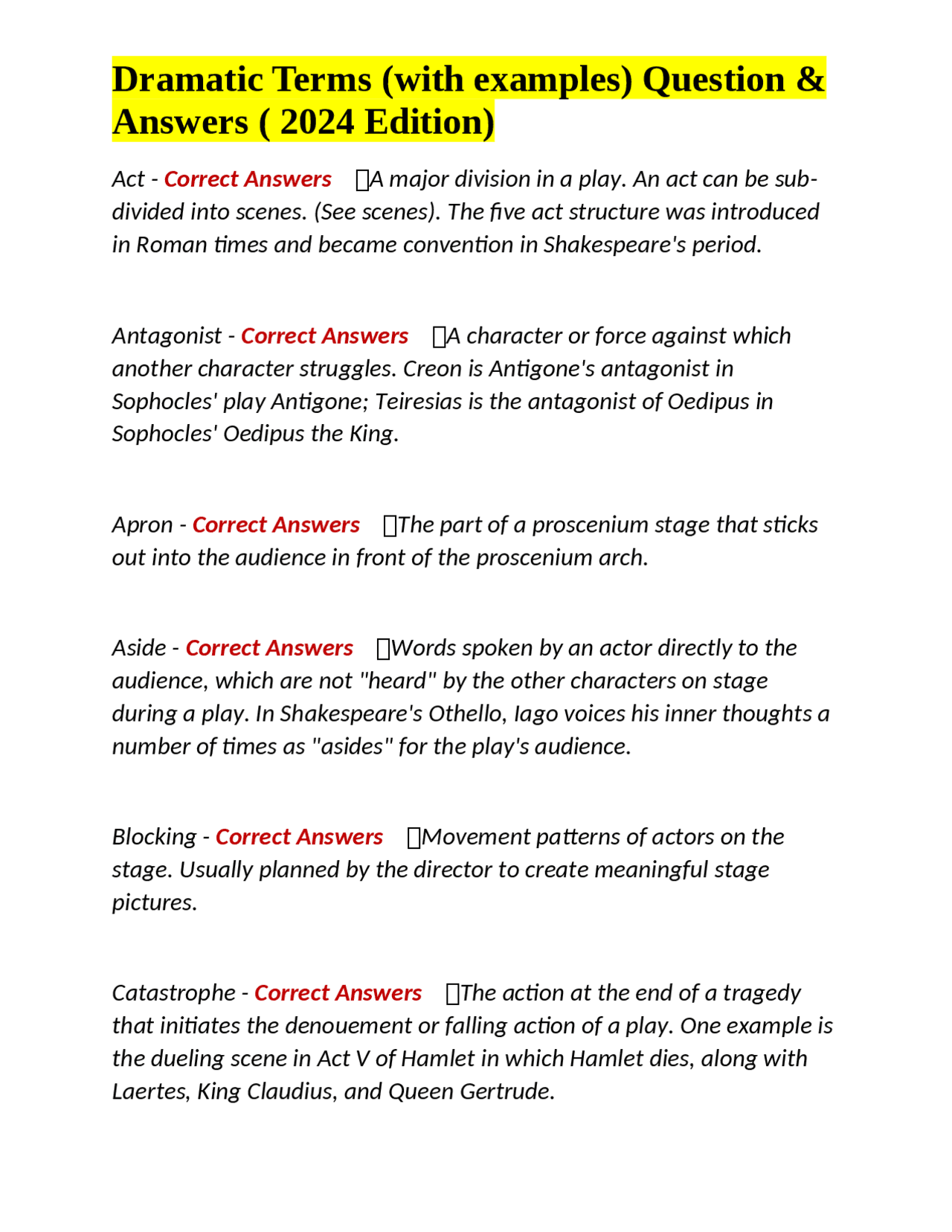 Dramatic Terms (with examples) Question & Answers ( 2024 Edition ...
