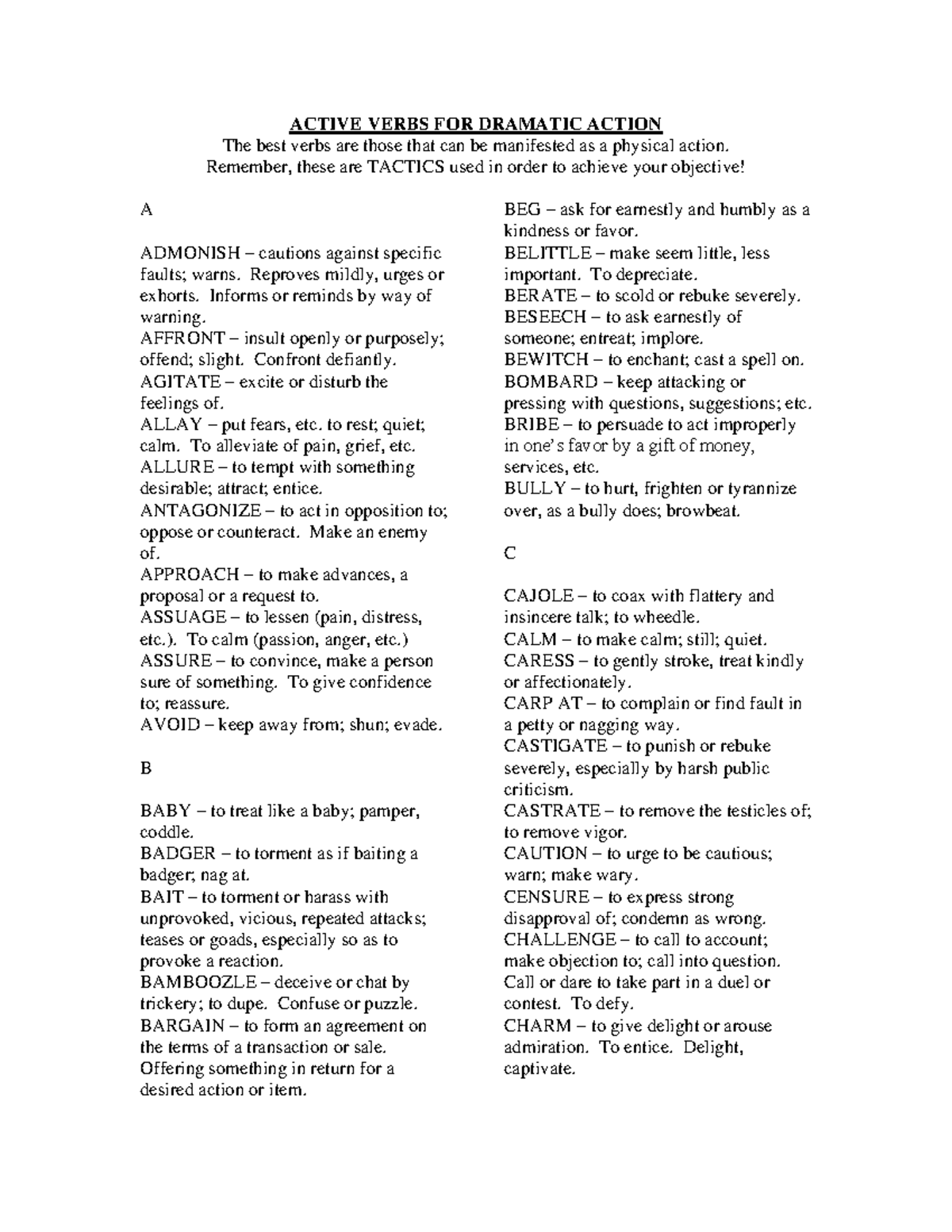 Acting Beats and Tactics | Action verbs, Drama education, Teaching theatre