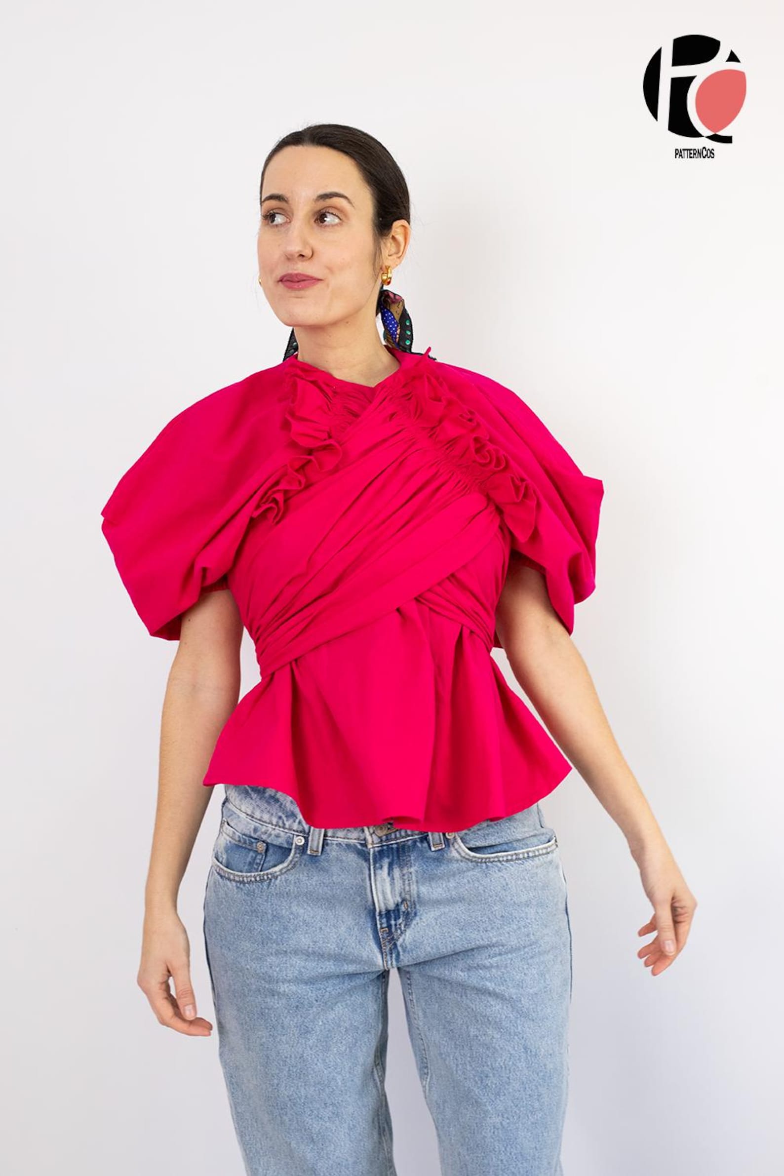 Drape Wrapped Blouse Sewing Pattern | Puffy Ranglan Sleeve | Elegant ...