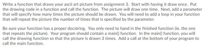 Solved Write a function that draws your ascii art picture | Chegg.com