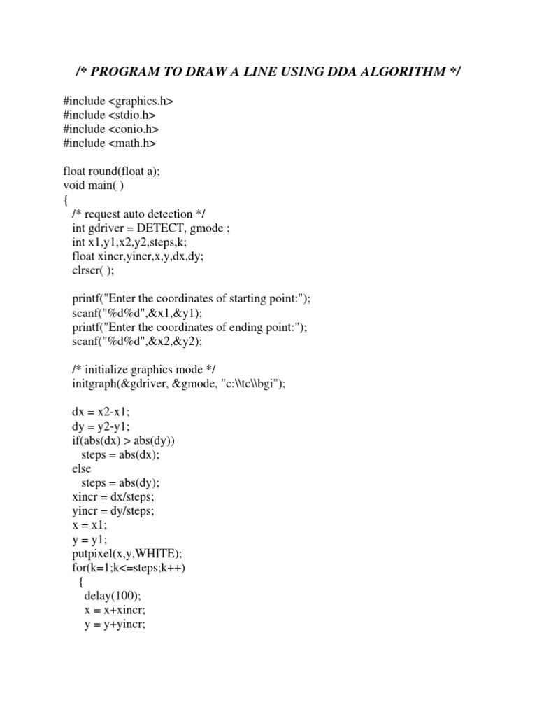 SOLUTION: Program to draw a line using dda algorithm - Studypool