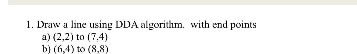Solved 1. Draw a line using DDA algorithm. with end points | Chegg.com