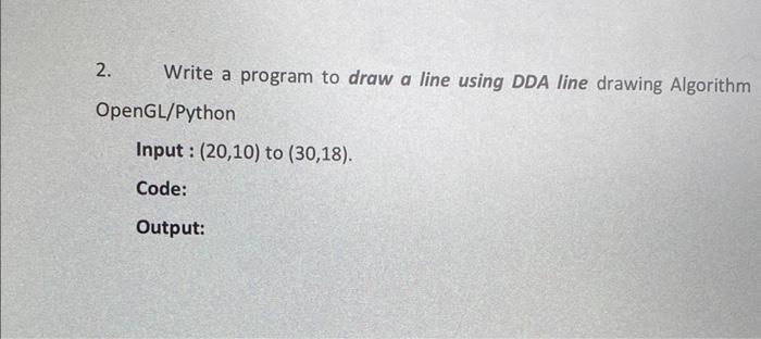 Solved 2. Write a program to draw a line using DDA line | Chegg.com