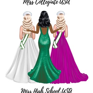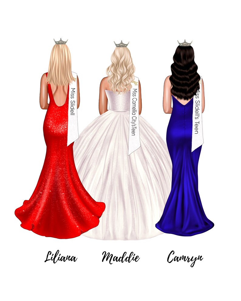 Pageant Group of 3 Digital Drawing W/ Sash - Etsy