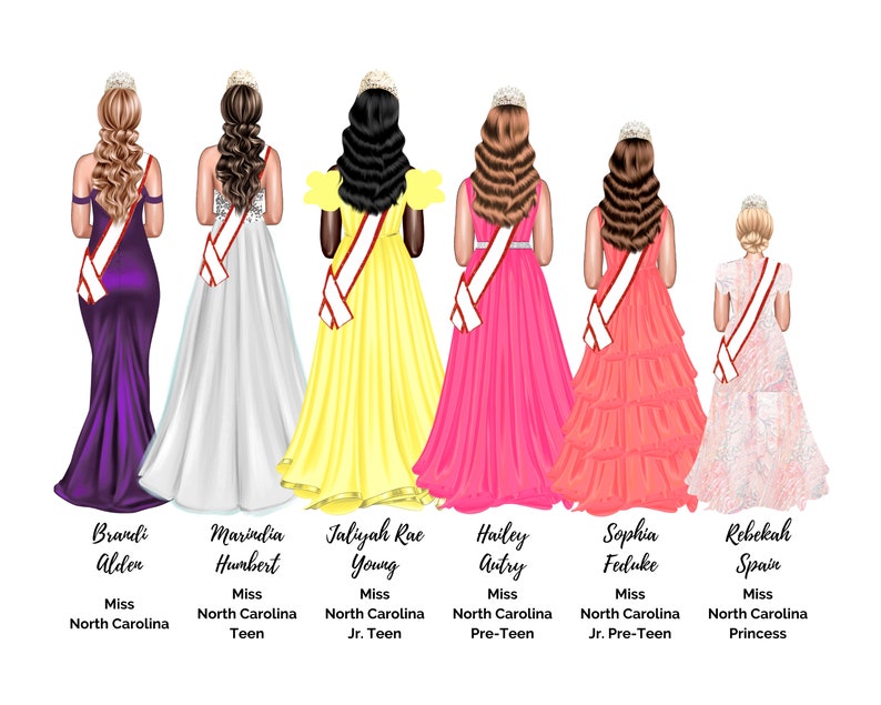 Pageant Group of 7 Digital Drawing With Sash - Etsy