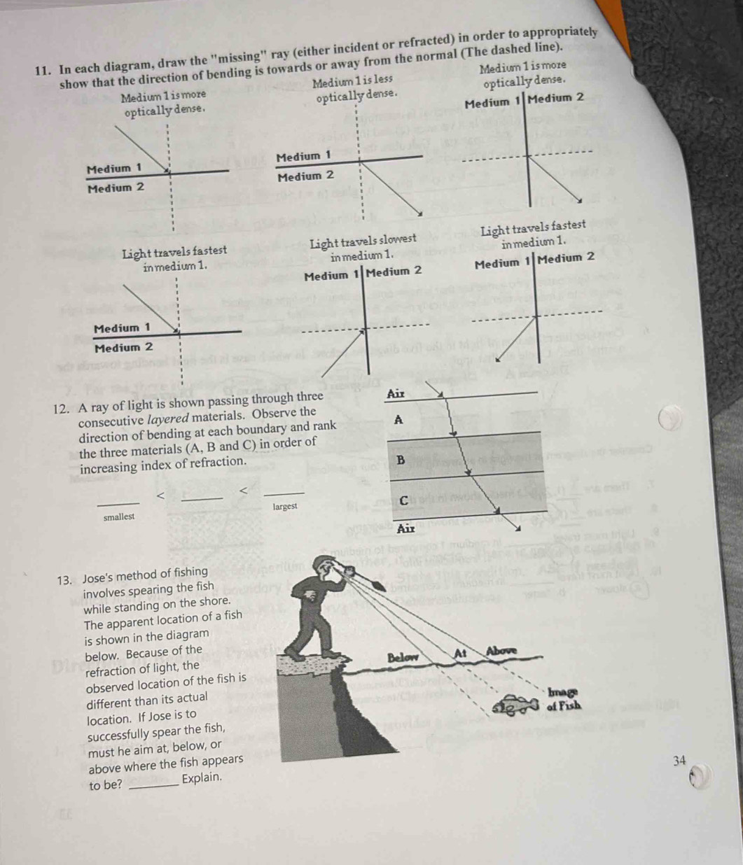 Draw a ray diagram to show the path of the refracted ray in each of the f..