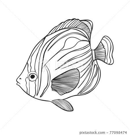 Reef Fishes Sketch Vector Illustration. Hand... - Stock Illustration ...