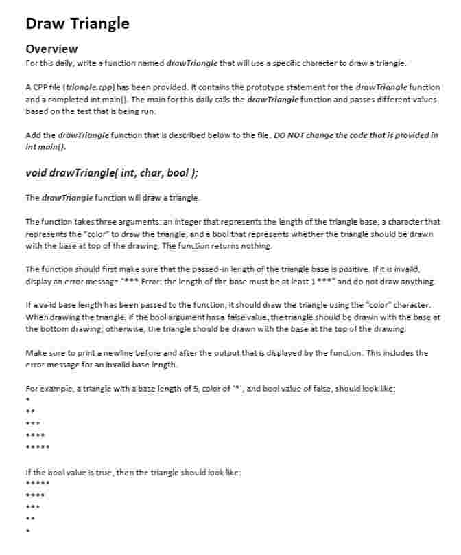 Solved Draw TriangleOverviewFor this daily, whtle a function | Chegg.com