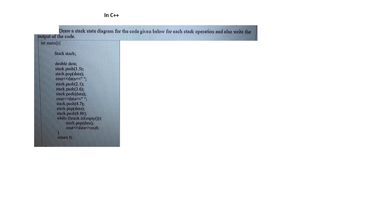 Solved In C++ Draw a stack state diagram for the code given | Chegg.com