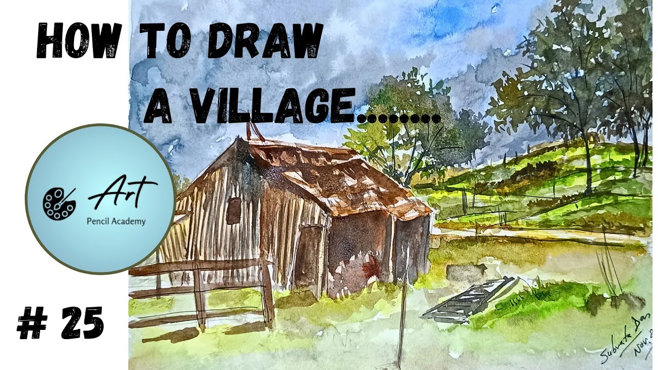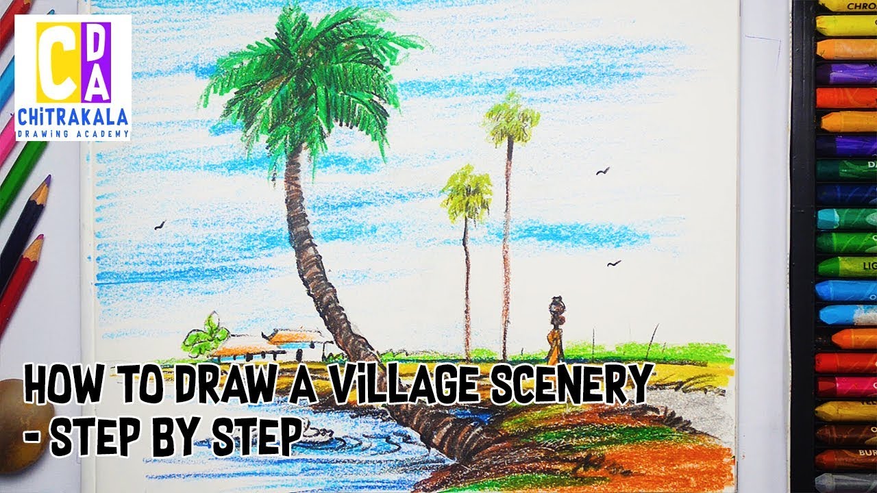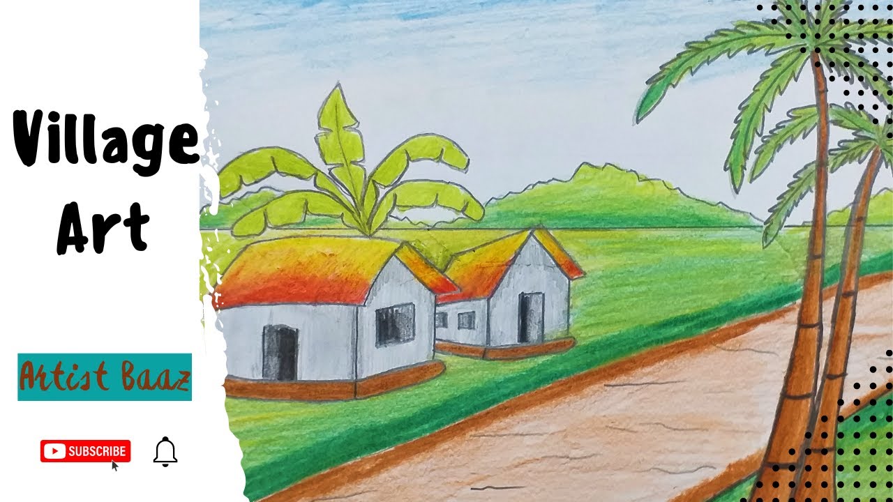 Free Video: How to Draw a Village Scenery Step by Step from Farjana ...