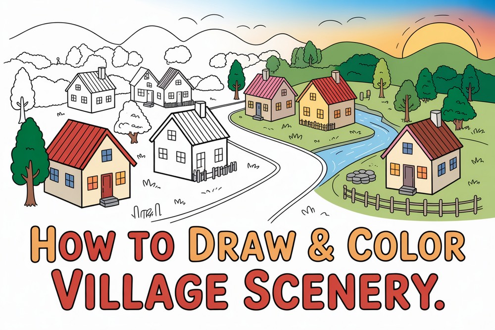 How to Draw a Village - Easy Drawing Tutorial For Kids