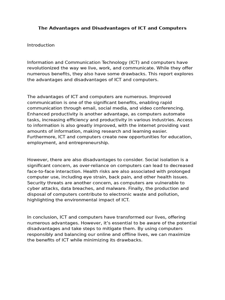 The Advantages and Disadvantages of ICT and Computers | PDF