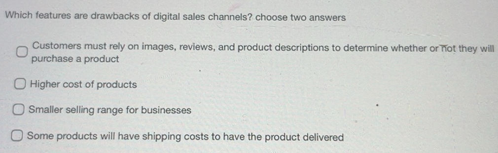 Solved: Which features are drawbacks of digital sales channels? choose ...