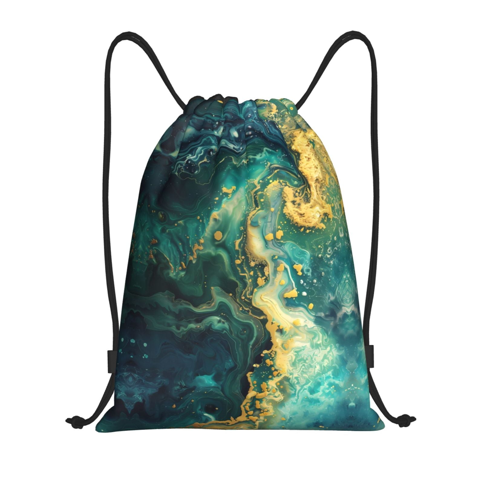 Drawstring Backpack - Turquoise Golden Swirl Splash Proof Small ...