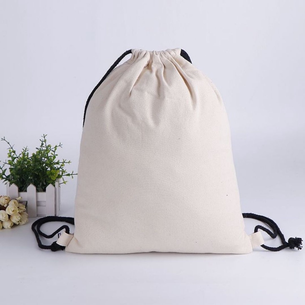 1pc Plain canvas string bag Back pack Katsa bag Drawstring bag ...