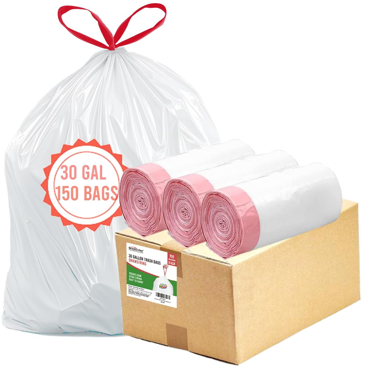 30 Gallon Trash Bags Drawstring, 75 Count, White & Unscented, Multi ...
