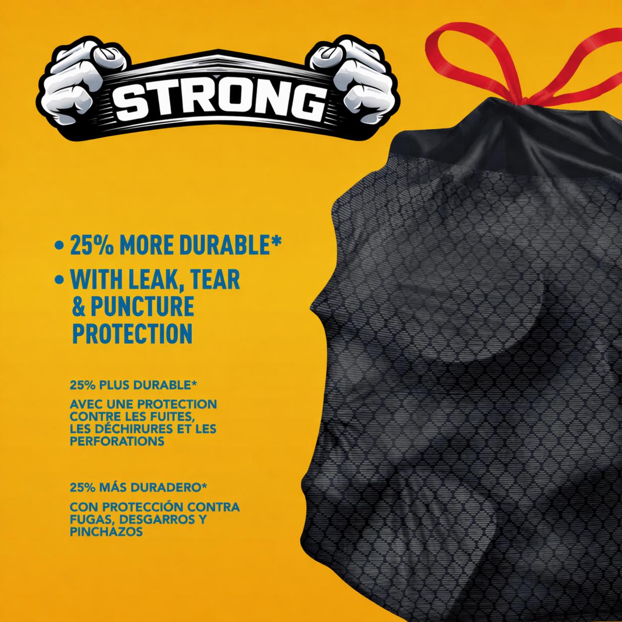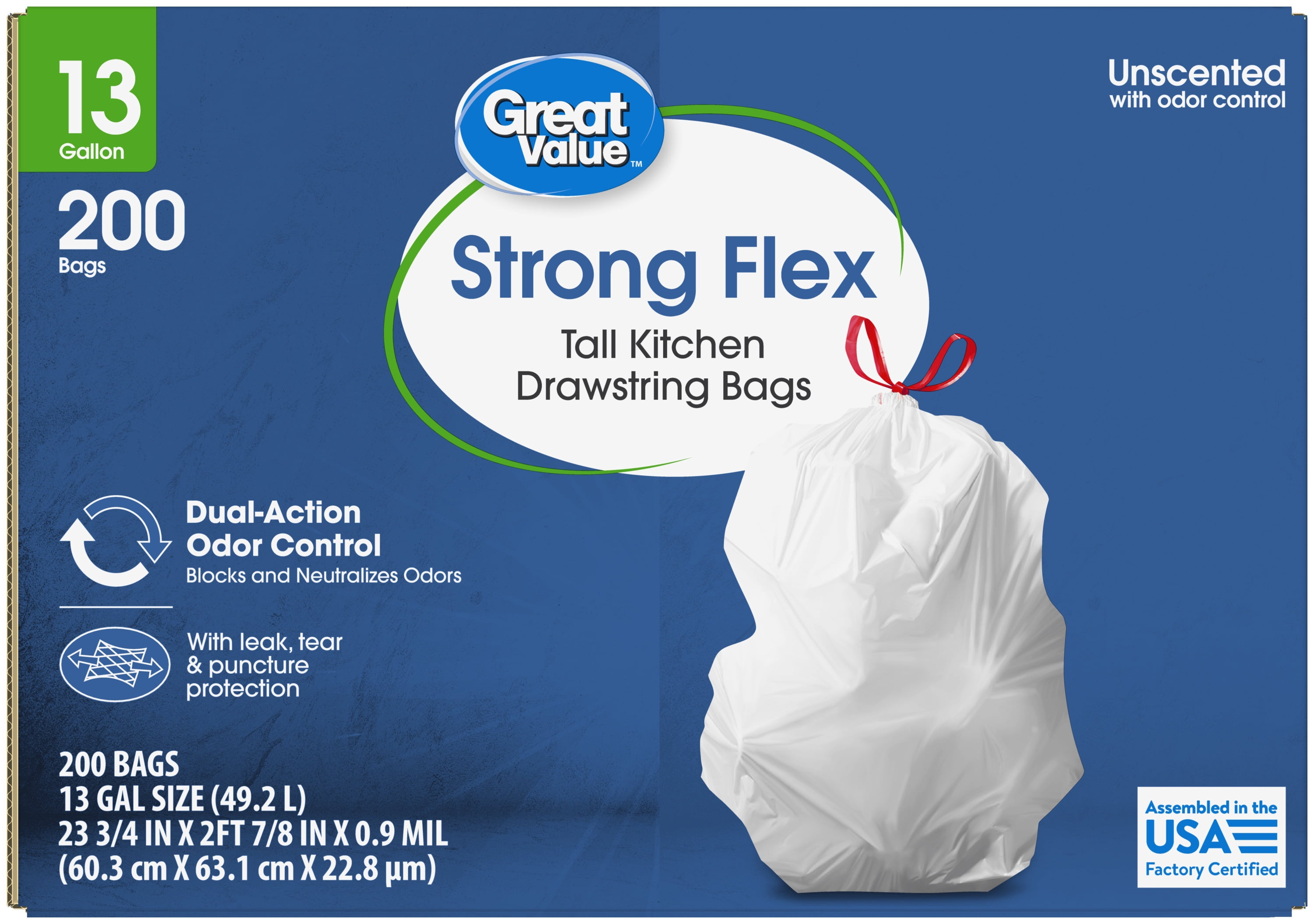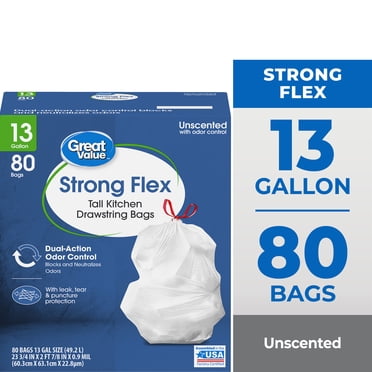 Great Value Strong Flex Drawstring Tall Kitchen Trash Bags, Unscented ...