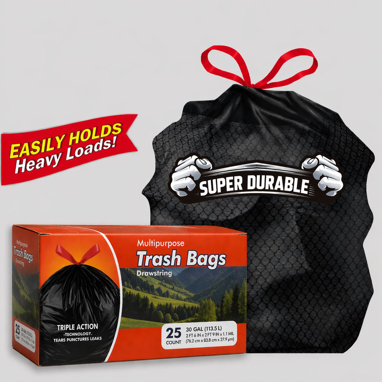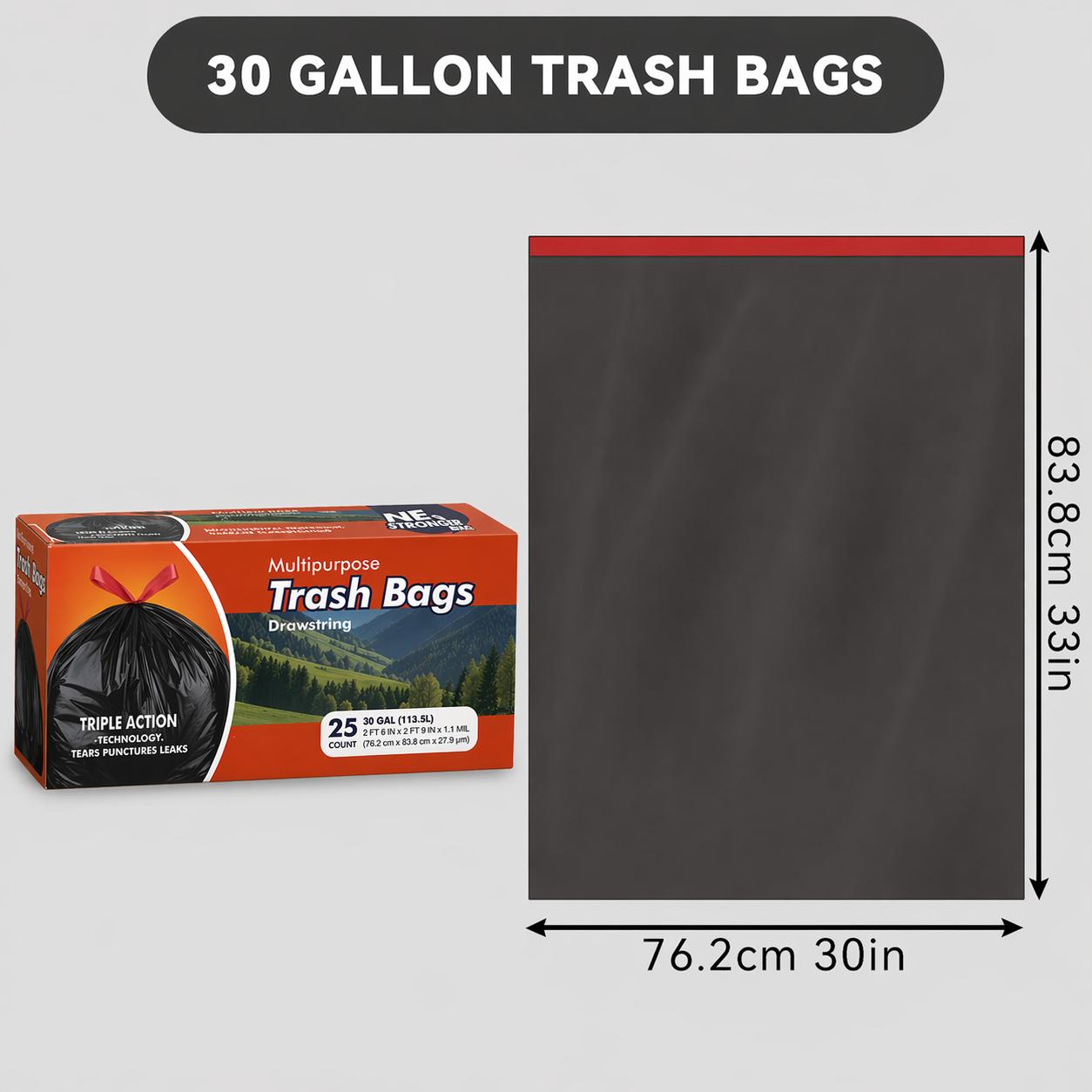 30-Gal Black Drawstring Trash Bags, 25-Count, BPA-Free, Durable Sturdy ...
